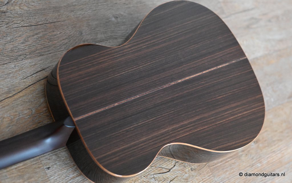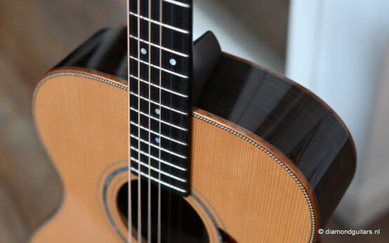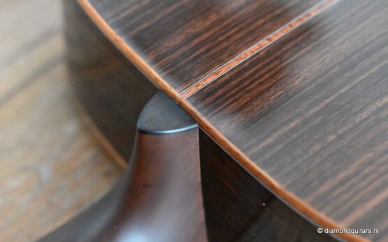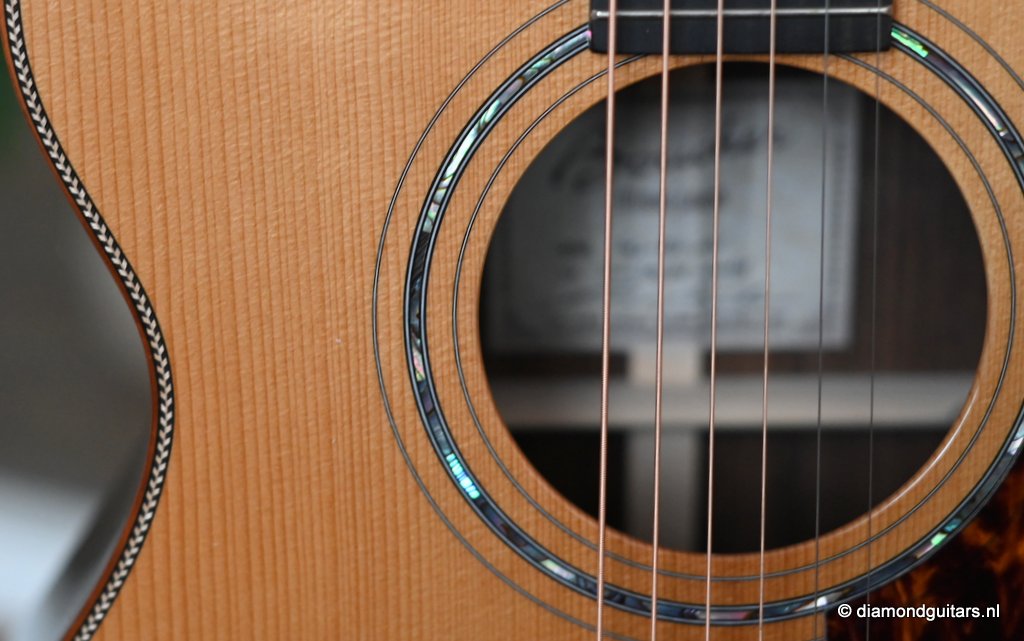 This option includes the torrefied master grade (AAAAA) Adirondack Red Spruce top, Koa binding and an Abalone rosette. The Mastergrade Adirondack is of the best of the best quality that can be found and very rare. Not only are these top light and stiff but also extremely resonant. Robin Boucher was the first Luthier to use the torrefaction process for Adirondack spruce soundboards, developing a unique roasting process with the University Laval of Quebec to accelerate wood aging. This industry-first innovation, launched in 2011, creates wood with enhanced stability, lighter weight, and improved tonal properties, giving it the sonic maturity of a naturally aged guitar