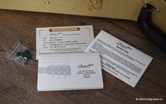 This wonderful Boucher Studio Goose SG-51 MV reflects master luthier Robin Boucher’s obsession with tone, precision, and responsiveness. Robin and his team live amongst the Adirondack Spruce forests of the Province of Quebec and source their own trees. Wathch this vid to see the whole proces from milling the tree to final assembly. Just awesome! And the Goose name is derrived from the snow geese that annually migrate to the Appalachian Mountains. She is outfitted with Boucher’s torrefied top treatment as part of the Master Voice option.