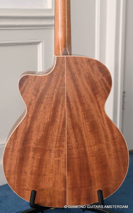 On top of that this O-size Lady offers huge volume and massive sustain. She’s also a lightweight with only 1.98 kg / 4.37 lbs. On top of that of course excellent craftsmanship! George and his team really know how to build great guitars. Play her and you know what I mean. She has a strong, warm, and brilliant sound which evolves like a carpet, being especially perfect for folk, country flat picking and strumming. The cutaway provides comfortable use of the higher frets.