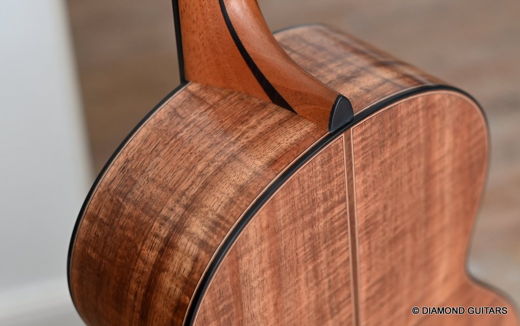 The S-body shape provides perhaps a more intimate Lowden experience and has a slightly shorter 630 mm scale. Thus, the string tension is slightly lower, which allows for even easier playing (vibrato). The soundbox is uniquely voiced to create a guitar that offers sweetness, depth, rounded trebles, impressive projection and a natural tonal balance that lends itself equally well to strumming and fingerpicking. Without sounding in any way lacking in vibrancy or dynamics, there’s an easygoing softness and warmth to this guitar that draws you right in. Due to its size, it is an especially great instrument to play while sitting on the couch or playing for a longer time. This guitar will deliver you a lifetime of pleasure, and over the years the tones will even grow in complexity. Listen to a sound impression here: